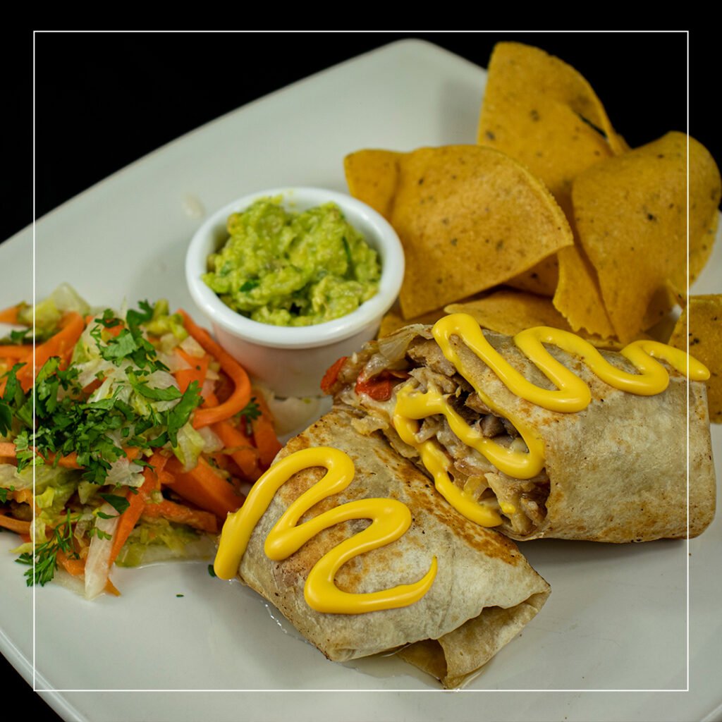 Julianas de carne de res o pollo salteadas con pimentón y salsa de soya, acompañadas de 4 tortillas de harina, porción de guacamole y pico de gallo.